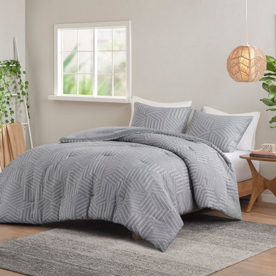 | Urban Habitat King/Cal King 1 Comforter: 104"W x 92"L 2 King Shams: 20"W x 36"L (2) Comforter/Sham: 100% polyester jacquard face; microfiber back Fill: 100% polyester Modern/Contemporary Style Includes 3 Piece(s) Machine wash cold separately, gentle cycle. Do not bleach. Tumble dry low. Do not iron. If there is no free movement in washer/dryer, use large capacity commercial washer/dryer. Featuring a tonal geometric design, the Urban Habitat Bentley matelasse jacquard comforter set adds a modern and sophisticated style to your bedroom. The grey blue comforter has a soft microfiber reverse, while coordinating shams complete the look of the bedding set. The comforter is filled with hypoallergenic polyester filling that is treated to be dustproof, ensuring a restful and comfortable sleeping experience. Plus, this comforter set has an antimicrobial treatment to keep the bedding fresher for longer by inhibiting bacteria growth and is machine washable for easy care. |