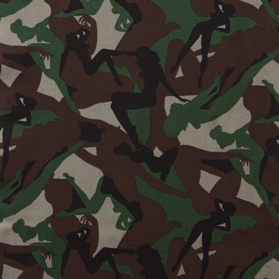 | Nicoles Prints - Black figure in center is 6 inches head to toe Camo Fabric Pin Up Fabric |