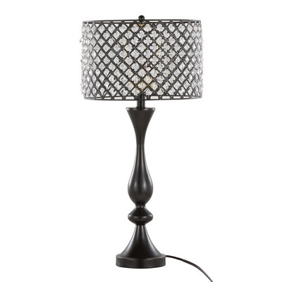 | Colors include: Oil Rubbed Bronze, Clear Crystal Add some glamour to your life with the slim yet curvaceous Topaz Table Lamp from Grandview Gallery by LumiSource. This lamp showcases a round base that builds up into an elegantly tiered body and is crowned by a crystalline metal shade casts a radiant display of distinctive cascading patterns through its crystal shade. Whether resting on your nightstands, set on a side table in the den, or tucked into your favorite reading nook, this lamp is a chic addition to any aesthetic. REQUIRES TWO (2) 60W BULBS, BULBS NOT INCLUDED; Indoor use only, UL Listed, cUL Listed, Assembly required 13"L x 13"W x 27.5"H Shade to Floor Height: 18.75" Base Length: 5.5" Base Width: 5.5" Lamp Body Height: 17.25" Lamp Neck Height: 1.5" Shade Length: 13" Shade Width: 13" Shade Height: 8.5" Finial Height: 0.75" Harp/pole Height: 7" Oil rubbed bronze finish Drum shade Clear K9 crystal accents Rotary switch Suitable for Living Room, Den, Bedroom, Office Item Weight: 5.5 Ships in 1 box(es) |