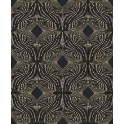 | Kravet Wallcoverings ANTONINA VELLA MODERN METALS SECOND EDITION DIAMOND METALLIC PRINT PRETRIMMED BLACK and GOLD Wallpaper Priced and sold by the roll of 11 Yards Up the bolt |