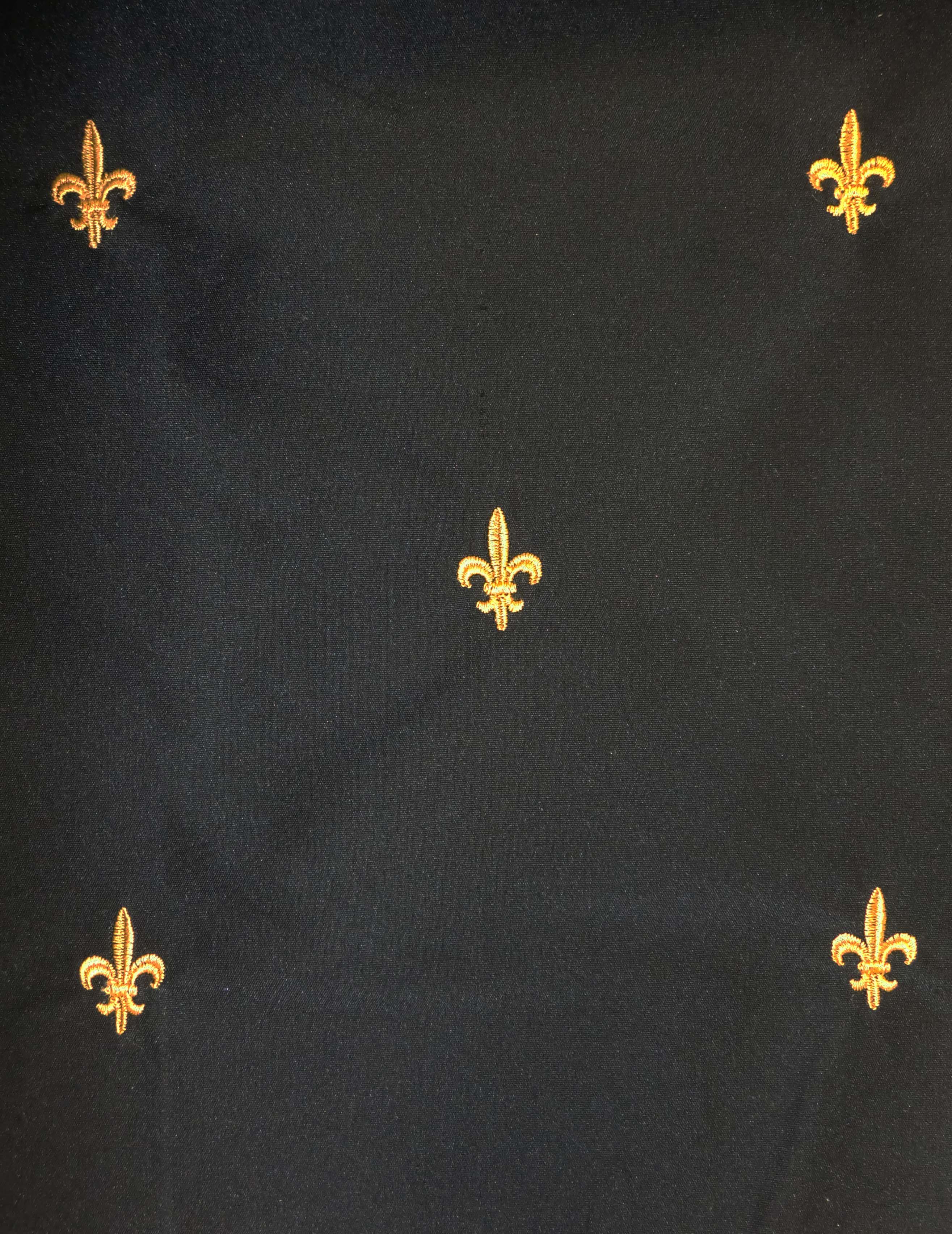 | Classic faux silk with embroidered Fleur de Lis. Fleur de Lis is about 1 inch tall by 3/4 inch wide. Polyester Taffeta fabrics are unique and may vary in their consistency. These variations are not considered flaws. Variations in dyelot occur from piece to piece. |