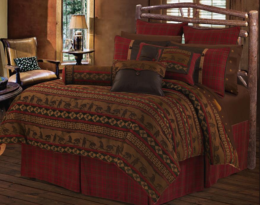 Rich chenille bedding set accented with bears and pinecones. Set Includes: