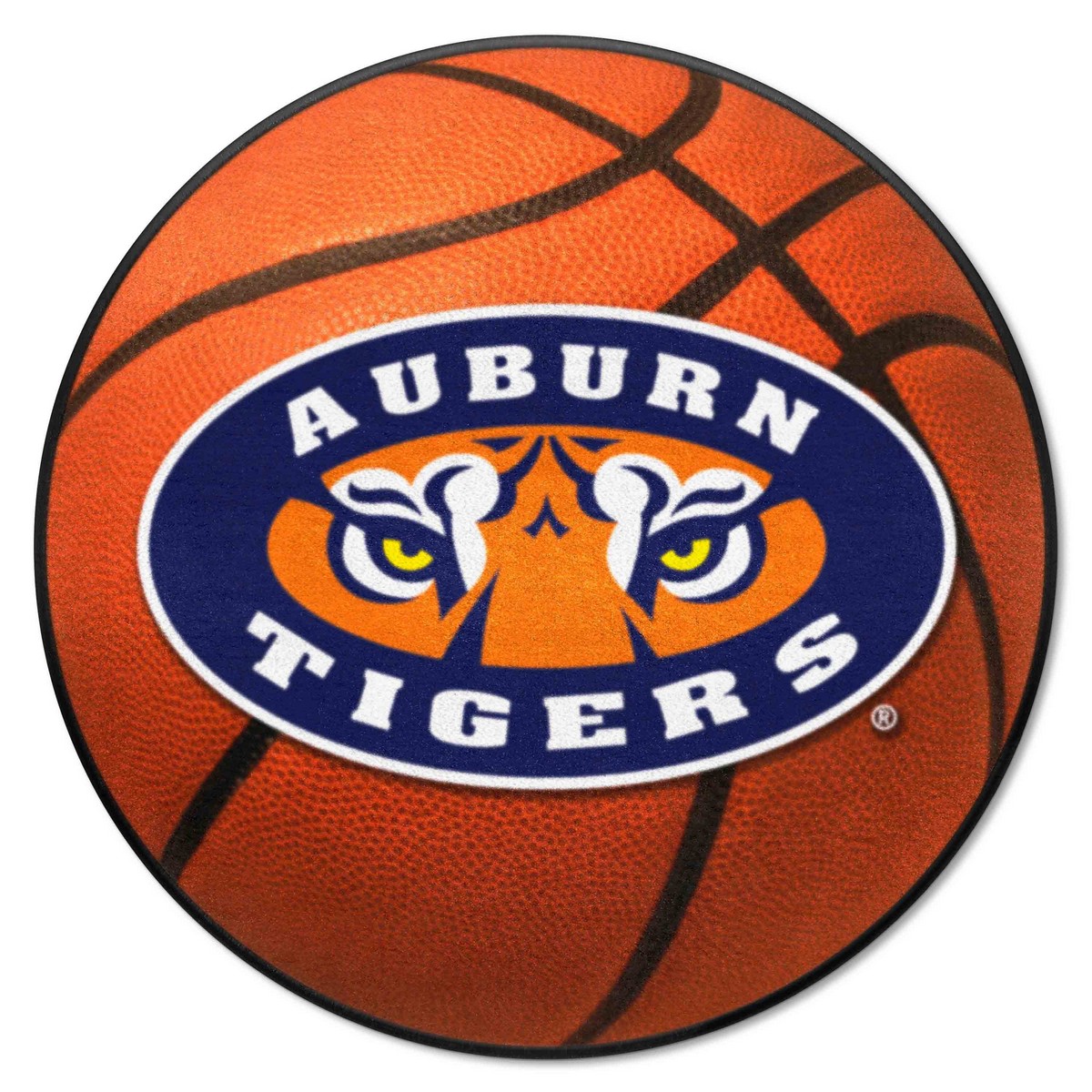 | Auburn Tigers Basketball Rug - 27in. Diameter, Tiger 9 Ounce, 100 % Nylon Face Recycled vinyl backing for a durable and longer-lasting product Machine made and tufted in the USA Non-skid backing with taped borders for added durability Machine washable; vacuum regularly and spot clean for any easy and quick clean Officially licensed and chromojet-printed in true team colors for vibrant, lasting color Auburn University in Alabama |