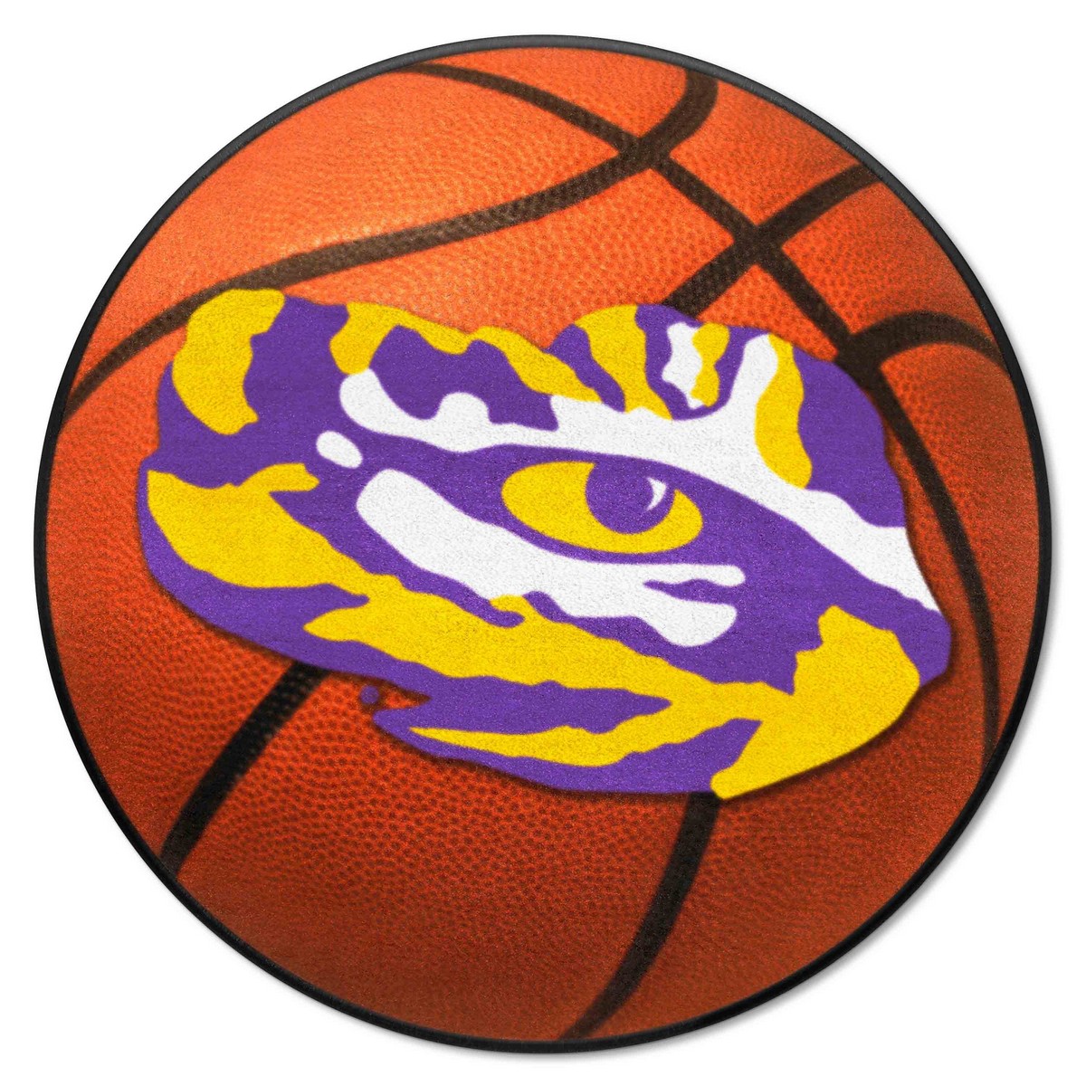| LSU Tigers Basketball Rug - 27in. Diameter 9 Ounce, 100 % Nylon Face Recycled vinyl backing for a durable and longer-lasting product Machine made and tufted in the USA Non-skid backing with taped borders for added durability Machine washable; vacuum regularly and spot clean for any easy and quick clean Officially licensed and chromojet-printed in true team colors for vibrant, lasting color Louisiana State University in Louisiana |