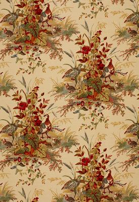 | Classic traditional hunting print features a trio of quail in brush and flowers. |