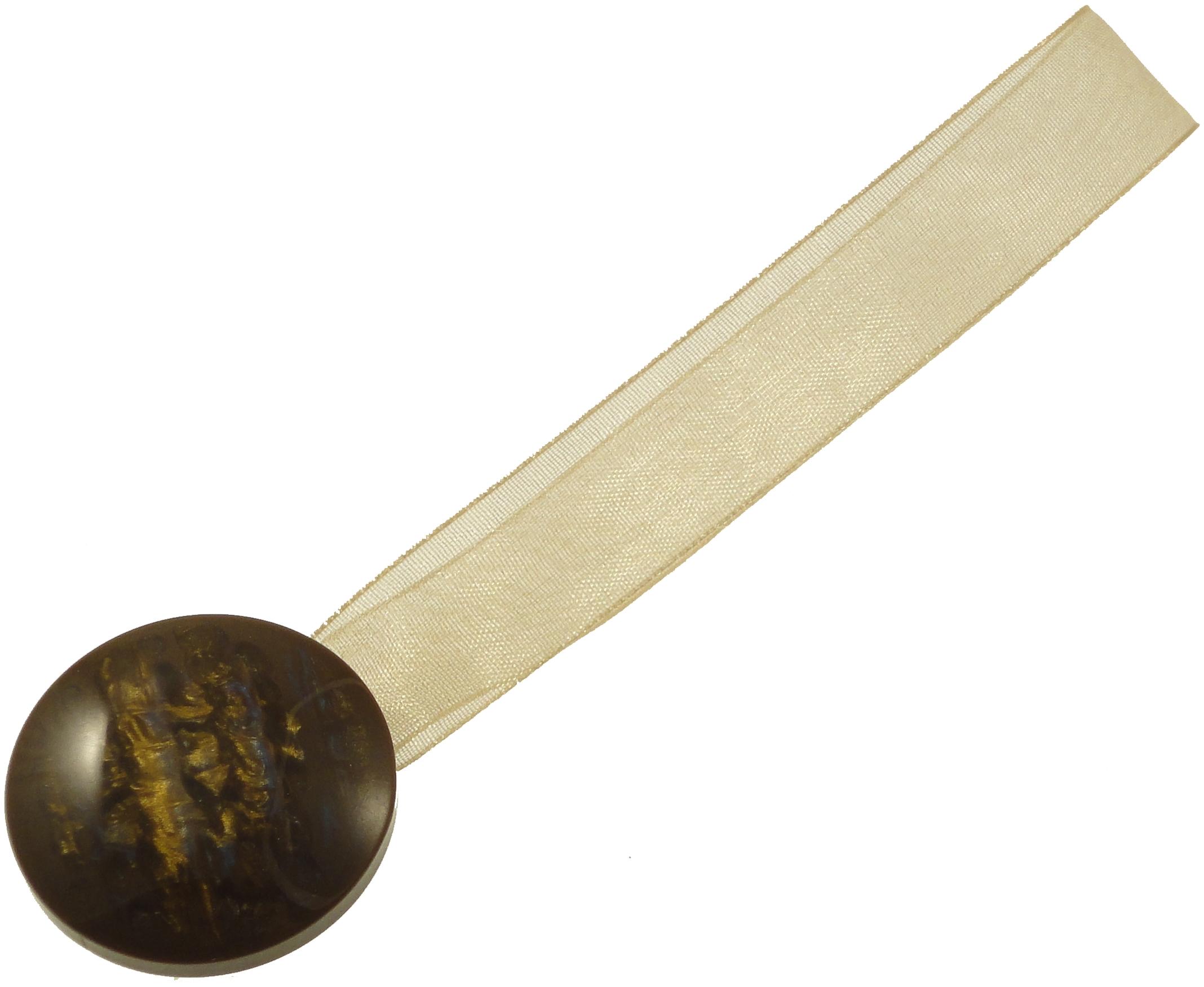 | Clips can hold tight through any curtain material without marking or damaging the fabric. Therefore, you do not need to drill or use any extra hardware to install your curtain rings or tie backs. Round Plastic Clip with 7in Organza Loop - Ribbon is 1/4" wide |