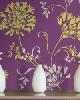 | A juicy purple hue, popping with vivacious chartreuse and platinum. This current flower wallcovering presents deluxe texture effects and an enchanted silhouette design. |