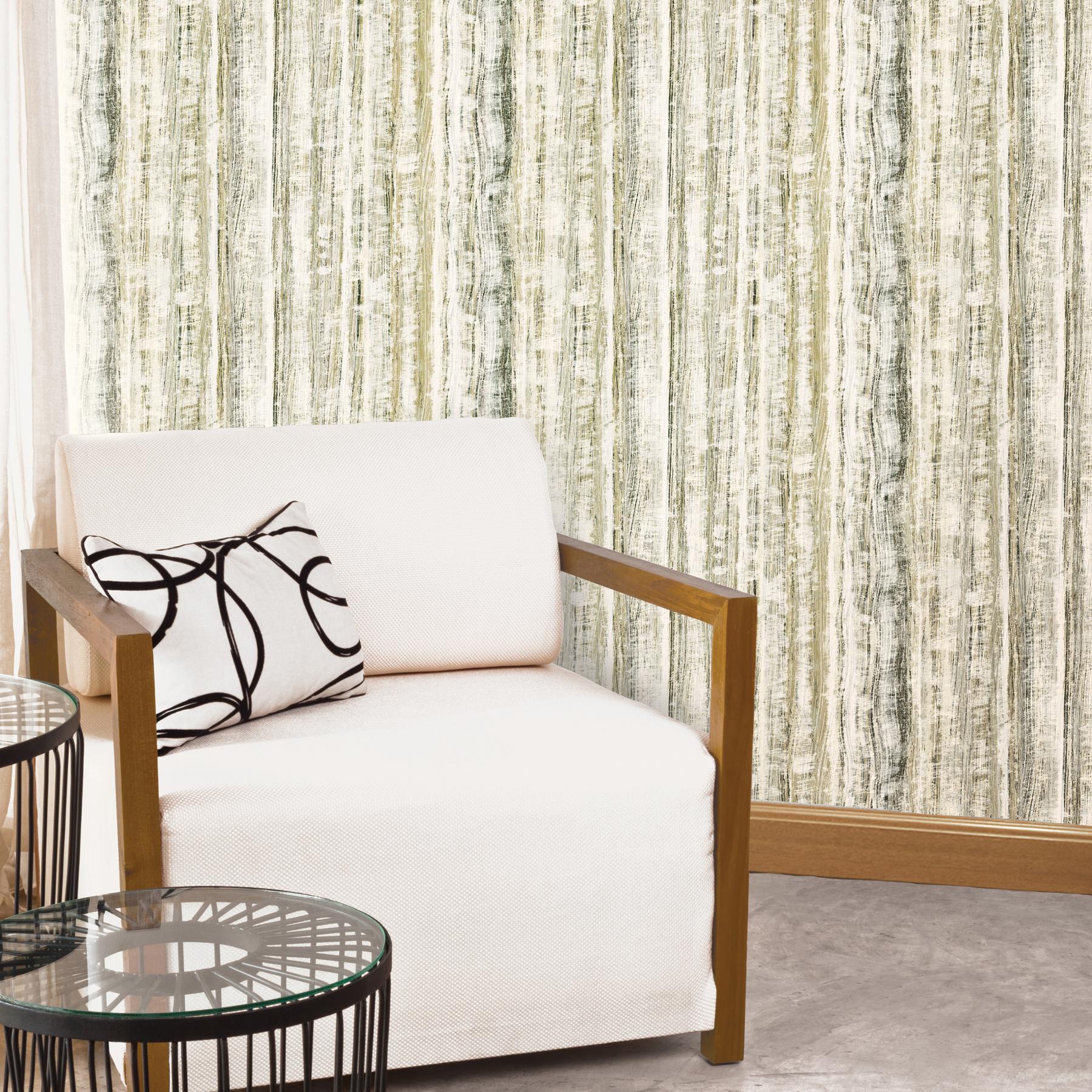 | A lovely stripe texture for walls that can take on the appearance of faux wood or a dazzling artistic masterpiece. With a black and grey color scheme flecked in gold this highly decorative wall paper design can transform any ordinary room into a hip Page: 118 Match: Straight Single Roll Width (in): 27 Single Roll Length (ft): 13.5 Unpasted Strippable |