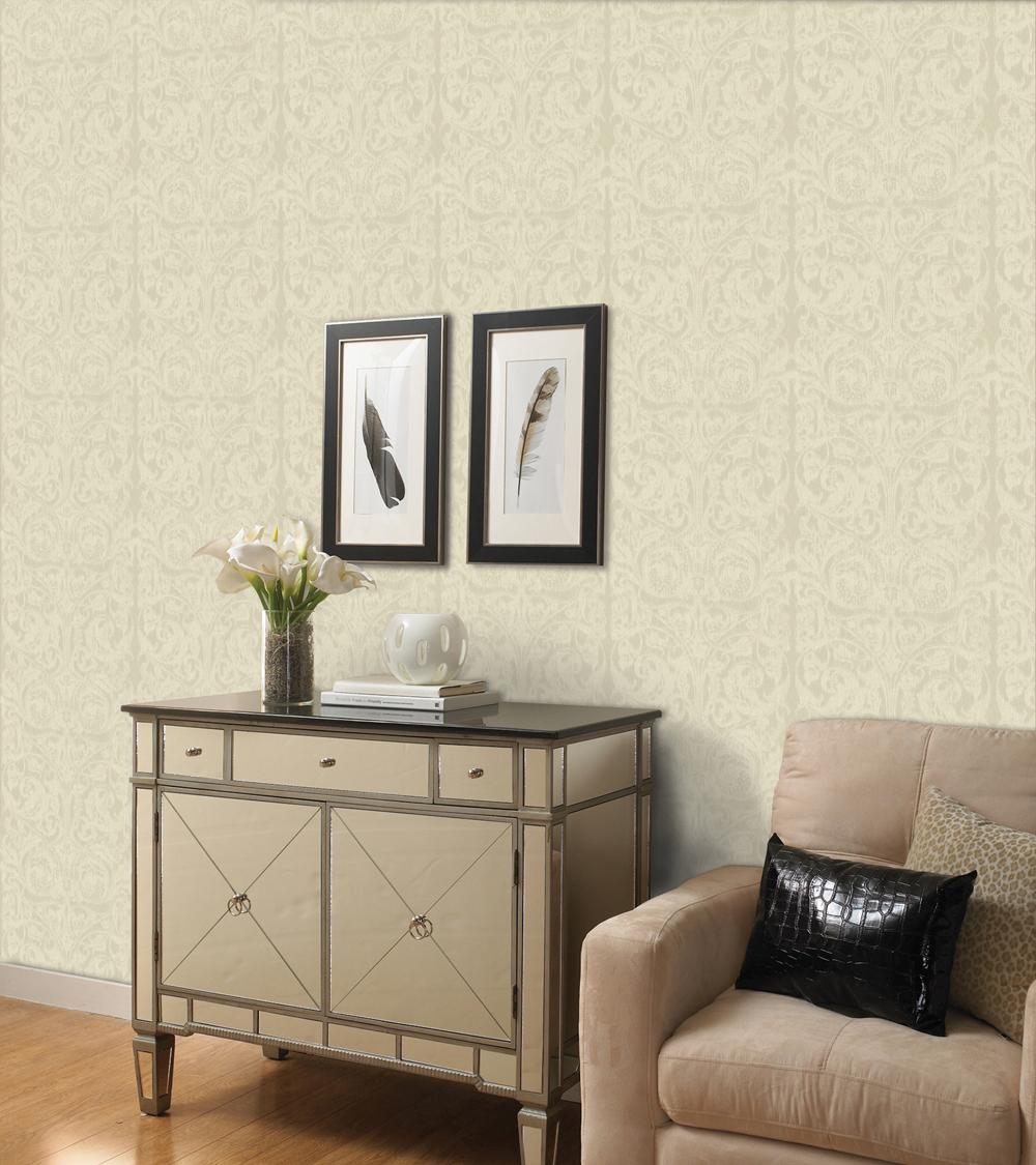 | Very Park Avenue this large scale damask is heathered with creams and wheat to make a very light and sophisticated wallcovering. Perfect for high traffic areas this wallcovering is extremely durable and fully scrubbable. Page: 29 Match: Straight Single Roll Width (in): 27 Single Roll Length (ft): 13.5 Unpasted Strippable |