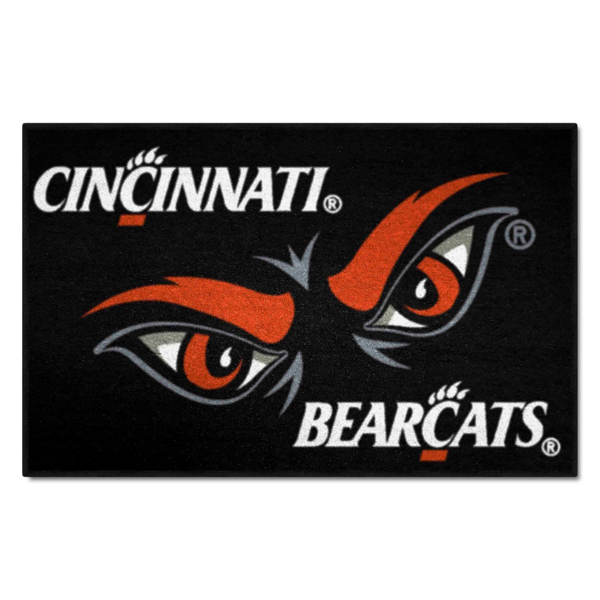 | Cincinnati Bearcats Starter Mat Accent Rug - 19in. x 30in. Uniform Design 9 Ounce, 100 % Nylon Face Recycled vinyl backing for a durable and longer-lasting product Machine made and tufted in the USA Non-skid backing with serged borders for added durability Machine washable; vacuum regularly and spot clean for any easy and quick clean Officially licensed and chromojet-printed in true team colors for vibrant, lasting color University of Cincinnati in Ohio |
