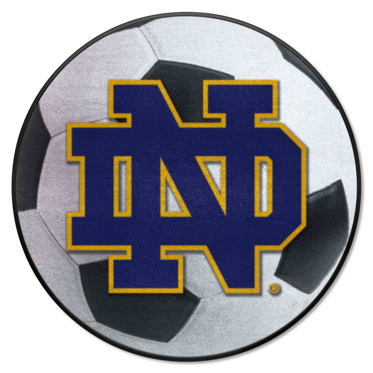 | Notre Dame Fighting Irish Soccer Ball Rug - 27in. Diameter 9 Ounce, 100 % Nylon Face Recycled vinyl backing for a durable and longer-lasting product Machine made and tufted in the USA Non-skid backing with taped borders for added durability Machine washable; vacuum regularly and spot clean for any easy and quick clean Officially licensed and chromojet-printed in true team colors for vibrant, lasting color Notre Dame in Indiana |