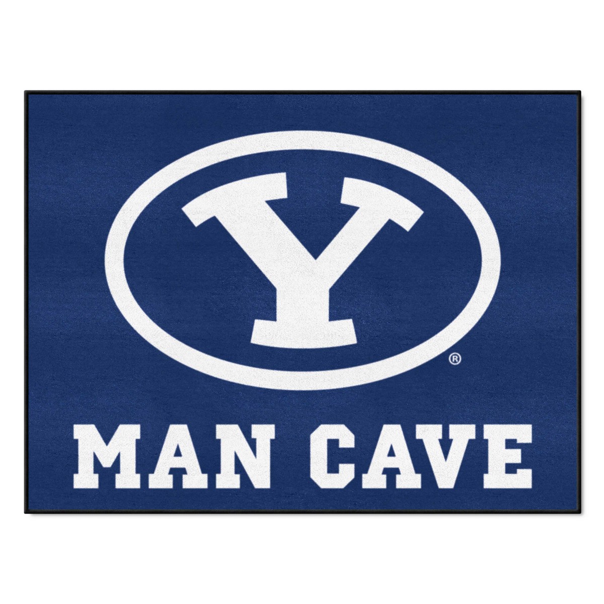 | BYU Cougars Man Cave All-Star Rug - 34 in. x 42.5 in. 9 Ounce, 100 % Nylon Face Recycled vinyl backing for a durable and longer-lasting product Machine made and tufted in the USA Non-skid backing with serged borders for added durability Machine washable; vacuum regularly and spot clean for any easy and quick clean Officially licensed and chromojet-printed in true team colors for vibrant, lasting color Brigham Young University in Utah |