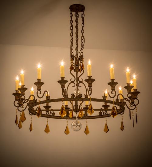 | Sparkling elegance and Glistening opulence come tolight with a gorgeous combination of crystal,candlelight and hardware in gold. 16 Ivory colored fauxcandlelights perched on bobeches with scrolled armsembrace a circular metal frame, which is adorned withAmber Crystal droplets and Clear Crystal accents. Thehardware and frame are featured in an exquisite CortezGold finish. Handcrafted in the USA, this fixture isavailable in custom sizes, styles and colors, as wellas with dimmable energy efficient lamping options. Thechandelier is UL and cUL listed for damp and drylocations. Meyda Tiffany Chandelier Bulb Type: CNDL Bulb Qty: 16 Bulb Wattage: 40 |