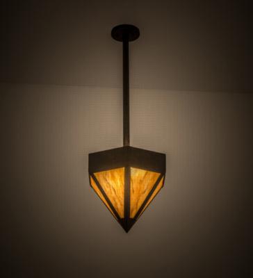 | Enhance your interior room with handcrafted warmthand welcoming illumination from this pendant, whichintegrates a striking diamond profile featuringhandpainted Amber colored Idalight with a texturedlook. The shade is complemented with a rugged frame andhardware featured in a handsome Chestnut finish. Customcrafted in the USA, this fixture is available in customsizes, styles, colors and dimmable energy efficientlamping options. the fixture is UL and cUL listed fordamp and dry locations. Meyda Tiffany Pendant Bulb Type: MED Bulb Qty: 2 Bulb Wattage: 40 |