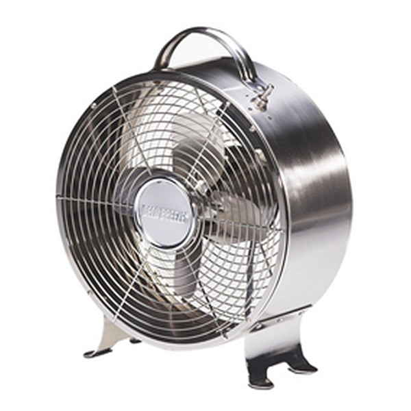 | Retro Metal Fan - Stainless Metal 2 Speed Motor 3 year limited manufacturer warranty Stationary, 25 watt Motor, Carrying handle High quality cast metal construction Table Fans |