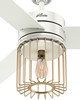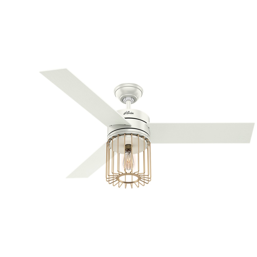 | This ultra-modern 3 blade ceiling fan adds unique styling with the wire-form cage light fixture with a vintage-style LED bulb. New October 2016 3 White Grain / Aged Oak Reversible Composite Blades Included Wire-Cage light kit uses one 5W LED bulb that is fully dimmable Remote Control Included Three position mounting with 2" or 3" downrod (included) - standard, flush or angled. Limited Lifetime Motor Warranty Reversible motor allows you to change the direction of your fan for the seasons 13 degree blade pitch optimized to ensure ideal air movement and peak performance Overall Height: 21.36 Airflow: 5414 CFM Electricy Use: 61 WATTS Airflow Efficiency: 88 CFM/WATT |