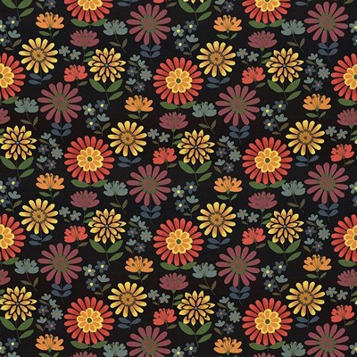 | Floral; Juvenile Prints Black Gold Orange Pink Purple Red Teal |