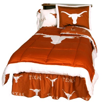 Comforter Set includes reversible comforter, and sham (s). All items are 100% cotton sateen 200 thread count for a softer feel than any other collegiate bedding available. Comforter has the University logo printed large on front with an all over logo pattern printed on the back giving you a truly reversible comforter with two unique looks. Twin size sets come with one sham, full, queen, and king size sets come with two shams. Reversible comforter.