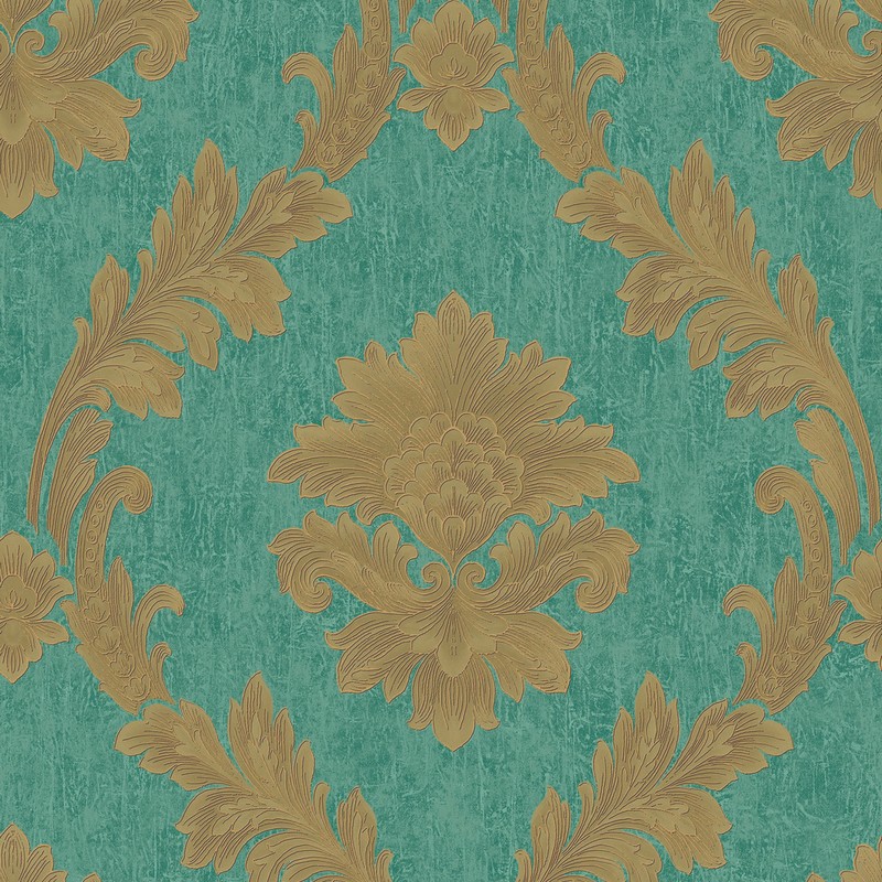 York Wallcovering Mixed Metals Acanthus Fan Wallpaper teal/gold