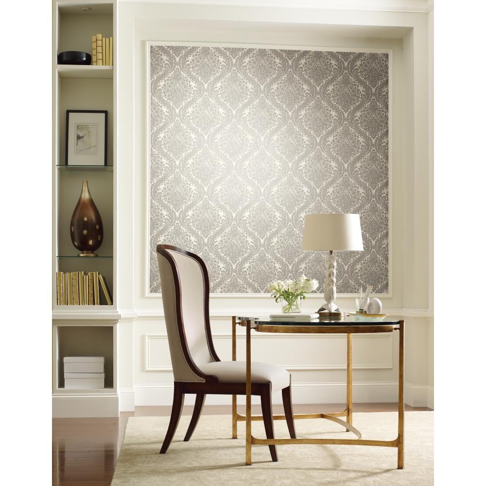 | Non-Woven Unpasted - Strippable - Washable This framed damask has all the delicate intricacies of tattersall lace and all the glamour of modern décor. Tradition may dictate, but trend inspires, this homage to classic beauty with the shimmering polish of the urban lifestyle. Use in tandem with partnering pattern “Channel Stripe”. |