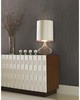 | Non-Woven Unpasted - Strippable - Washable Undulating waves of liquid metal create raised geometric forms with an organic feel in this sinuous vertical pattern. A backdrop of subtle texture adds depth and warmth as a platform for a feeling of modern elegance. |