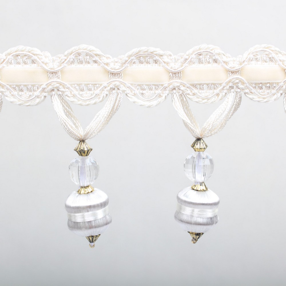 3 1/4" Ball Fringe with bead and gimp style trim.