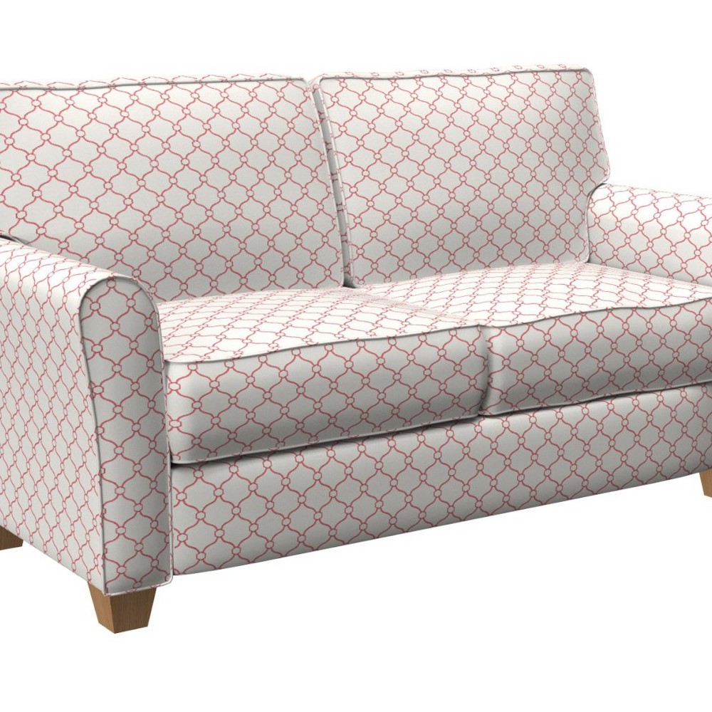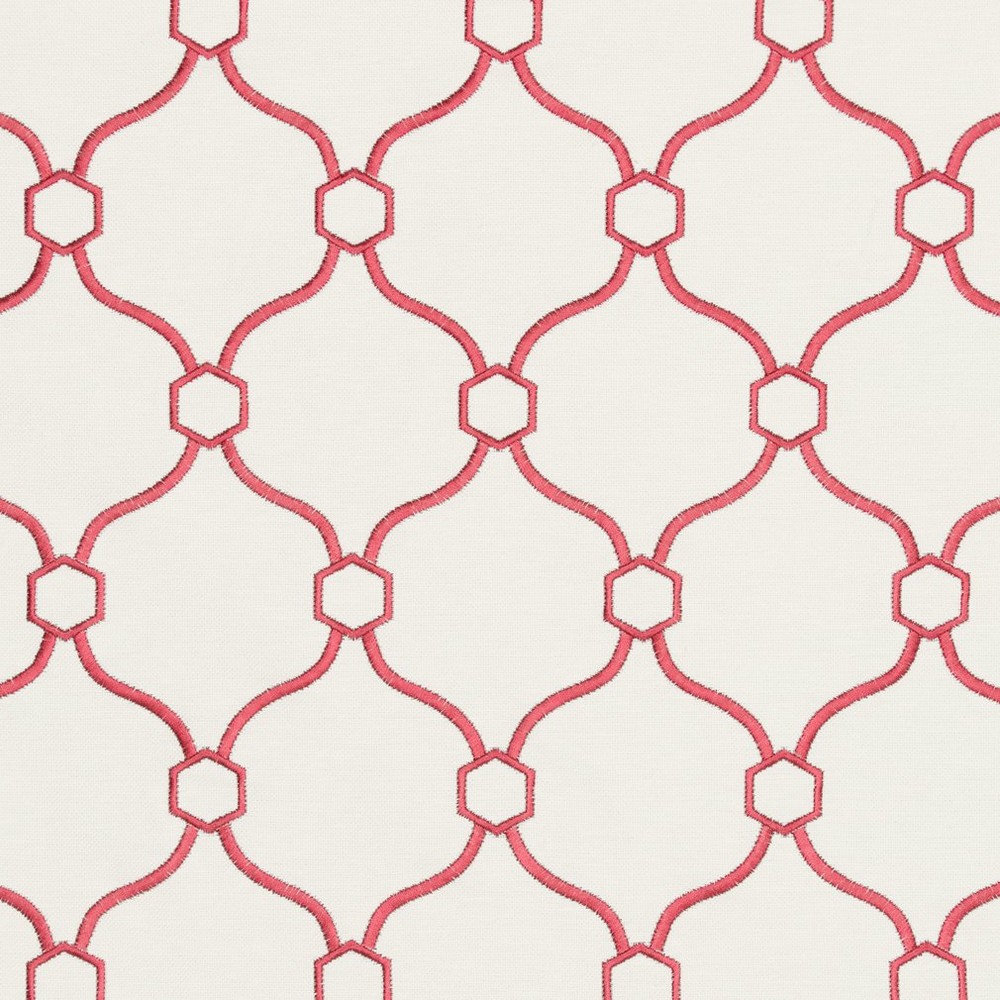 | Fabric Shades of Coral White Suitable for Commercial Use Hospitality Residential Bedding Contemporary Fabric Shown Not Railroaded (Up the Roll) Diamond Ogee Fabric |