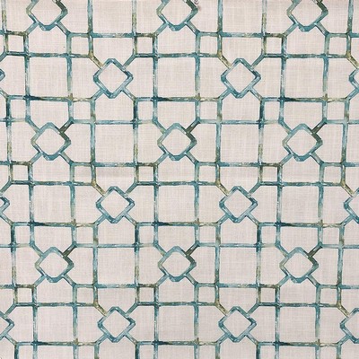 | Magnolia Aqua/teal Geometric Bedding Fabric Pattern is Uproll Lattice And Fretwork Fabric |