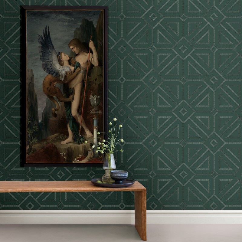 Brewster Wallcovering Voltaire Dark Green Geometric Wallpaper