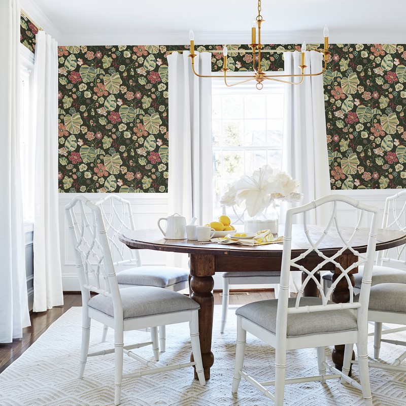 Brewster Wallcovering  Gwyneth Dark Green Floral Wallpaper