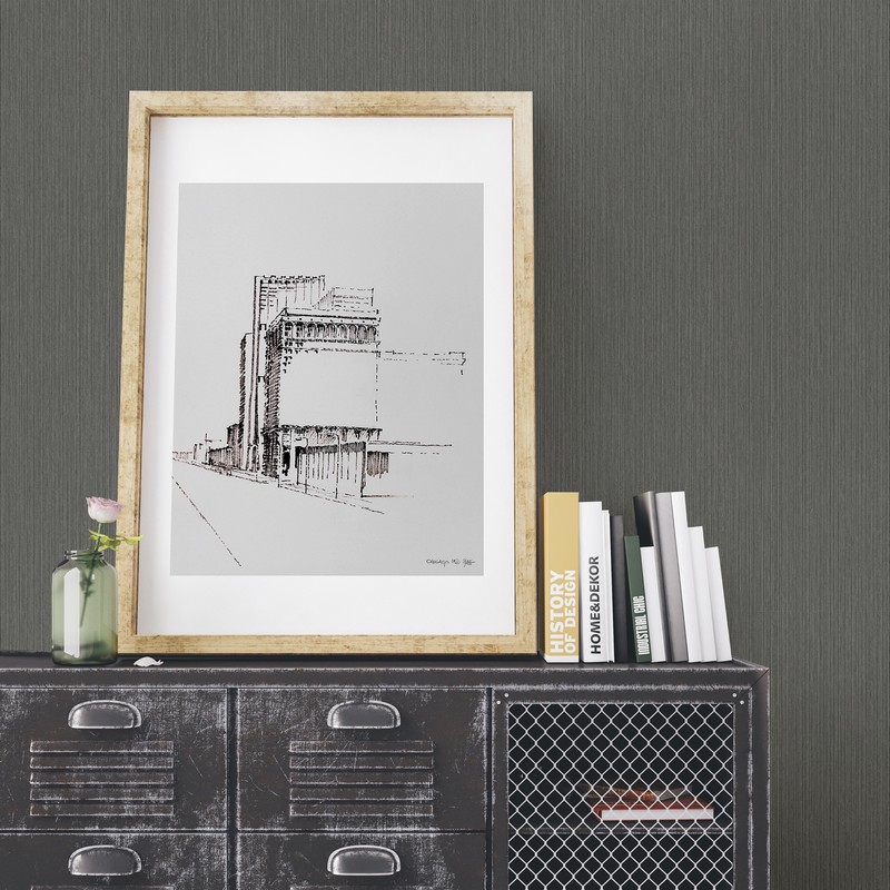 This distressed plywood texture print has a luxurious appeal with its rich charcoal hue. With grey and silver accents its traditional stripe design stands out. Ewell is an unpasted, non woven wallpaper. Crewe is an unpasted, non woven wallpaper.