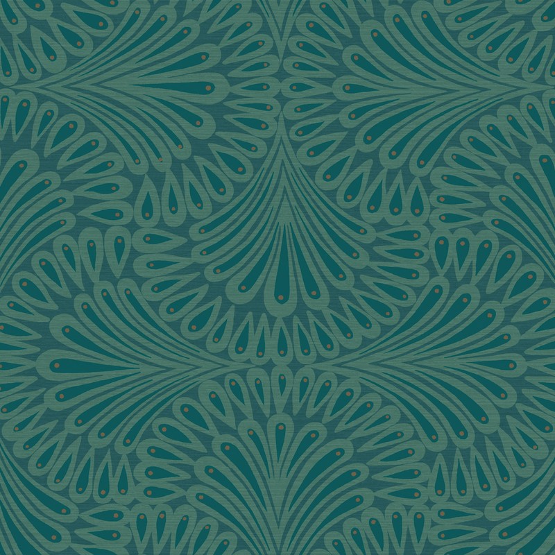 | A graceful curvilinear design, Cabaret Wallpaper is punctuated with metallic dots and features stylized peacock feather fans reminiscent of a 1920s dancer's costume. Unpasted - Washable - Strippable Packaged and sold as a double roll Repeat: 25.25 in. Match: Straight Antonina Vella Deco |