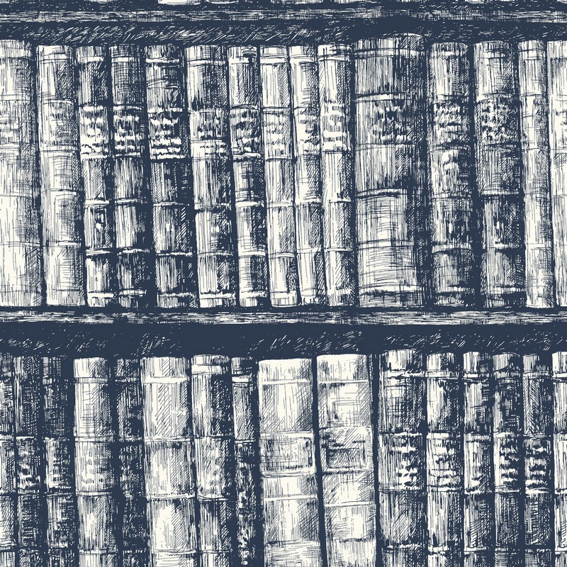 York Wallcovering Library Bookshelf Wallpaper Blue