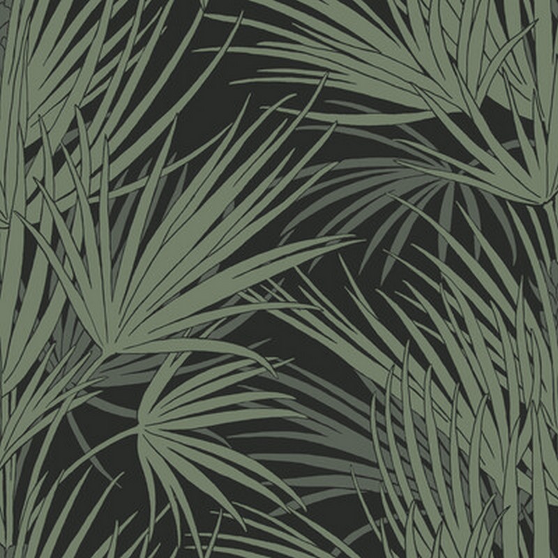 | Kravet Wallcoverings Tropical Print Pretrimmed black And Green Wallpaper Priced and sold by the roll of 11 Yards Up the bolt |