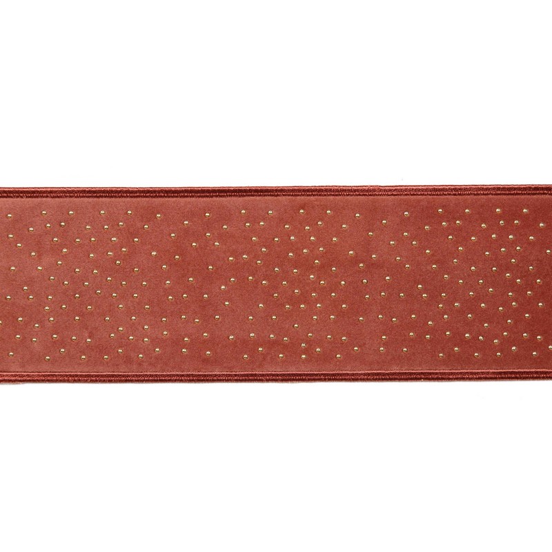 | 3 Inch wide velvet tape with metallic ditsie dot pattern. Fabulous velvet trim for draperies, pillows and more. |