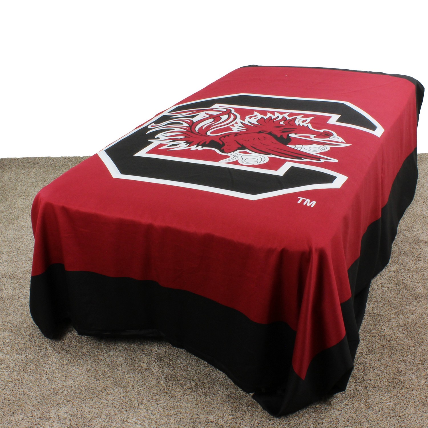 | South Carolina Gamecocks Measures 100" x 96". Can be used as either a duvet cover on a king sized bed or left empty and used as a summer blanket or a spare blanket to cuddle up with on the couch Large and vibrantly colored NCAA licensed logos in your favorite team on both sides of the blanket, truly reversible 100% cotton sateen, 200 thread count is machine washable in cold water, tumble dry on low Imported 0 Machine Wash Cold; Tumble Dry Low |