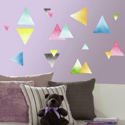 | Give your room a trendy makeover with these Watercolor Triangle Peel and Stick Wall Decals from RoomMates! A great way to brighten your walls in style these wall stickers can be added to any surface in minutes. Simply peel each wall sticker from the sticky backing and add them to the wall. Thats it!PINK LIGHT DESIGNS Match: Colors: multi Roll Specs : 4 sheets 10 inches X 18 inches Number of Decals : 76 |