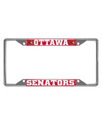 | Ottawa Senators Chrome Metal License Plate Frame, 6.25in x 12.25in Made of chrome metal with a durable finish that resists the elements Team logo is domed and features vibrant colors that catch the eye 4 pre-drilled holes ensure a safe and secure fit, plus no rattling noises while driving Slimline design helps keep registration tag visible Fits most standard plates, measures 6.25" x 12.25" Screws not included NHL - Ottawa Senators in Ontario NHL National Hockey League |