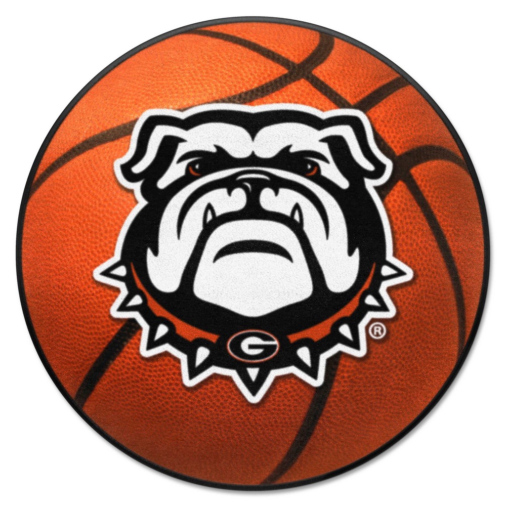 | Georgia Bulldogs Basketball Rug - 27in. Diameter 9 Ounce, 100 % Nylon Face Recycled vinyl backing for a durable and longer-lasting product Machine made and tufted in the USA Non-skid backing with taped borders for added durability Machine washable; vacuum regularly and spot clean for any easy and quick clean Officially licensed and chromojet-printed in true team colors for vibrant, lasting color University of Georgia in Georgia |
