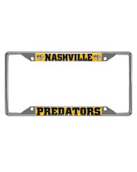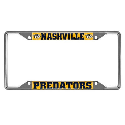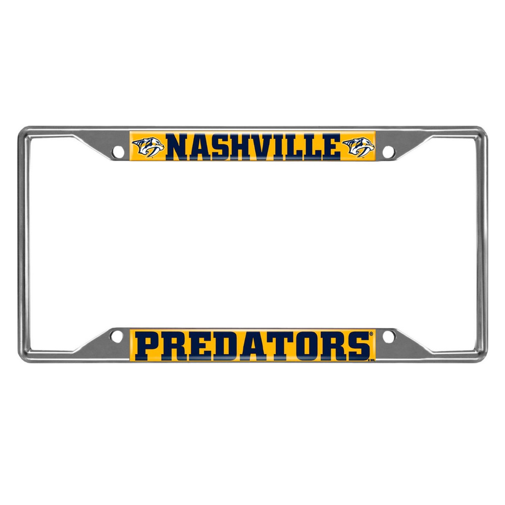| Nashville Predators Chrome Metal License Plate Frame, 6.25in x 12.25in Made of chrome metal with a durable finish that resists the elements Team logo is domed and features vibrant colors that catch the eye 4 pre-drilled holes ensure a safe and secure fit, plus no rattling noises while driving Slimline design helps keep registration tag visible Fits most standard plates, measures 6.25" x 12.25" Screws not included NHL - Nashville Predators in Tennessee NHL National Hockey League |