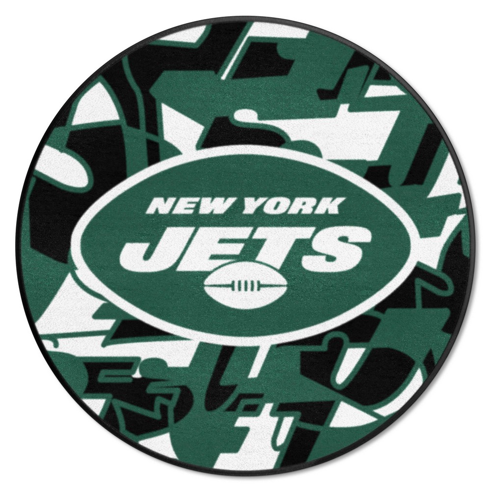 | New York Jets Roundel Rug - 27in. Diameter XFIT Design 9 Ounce, 100 % Nylon Face Recycled vinyl backing for a durable and longer-lasting product Machine made and tufted in the USA Non-skid backing with taped borders for added durability Machine washable; vacuum regularly and spot clean for any easy and quick clean Officially licensed and chromojet-printed in true team colors for vibrant, lasting color NFL - New York Jets in New Jersey NFL National Football League |