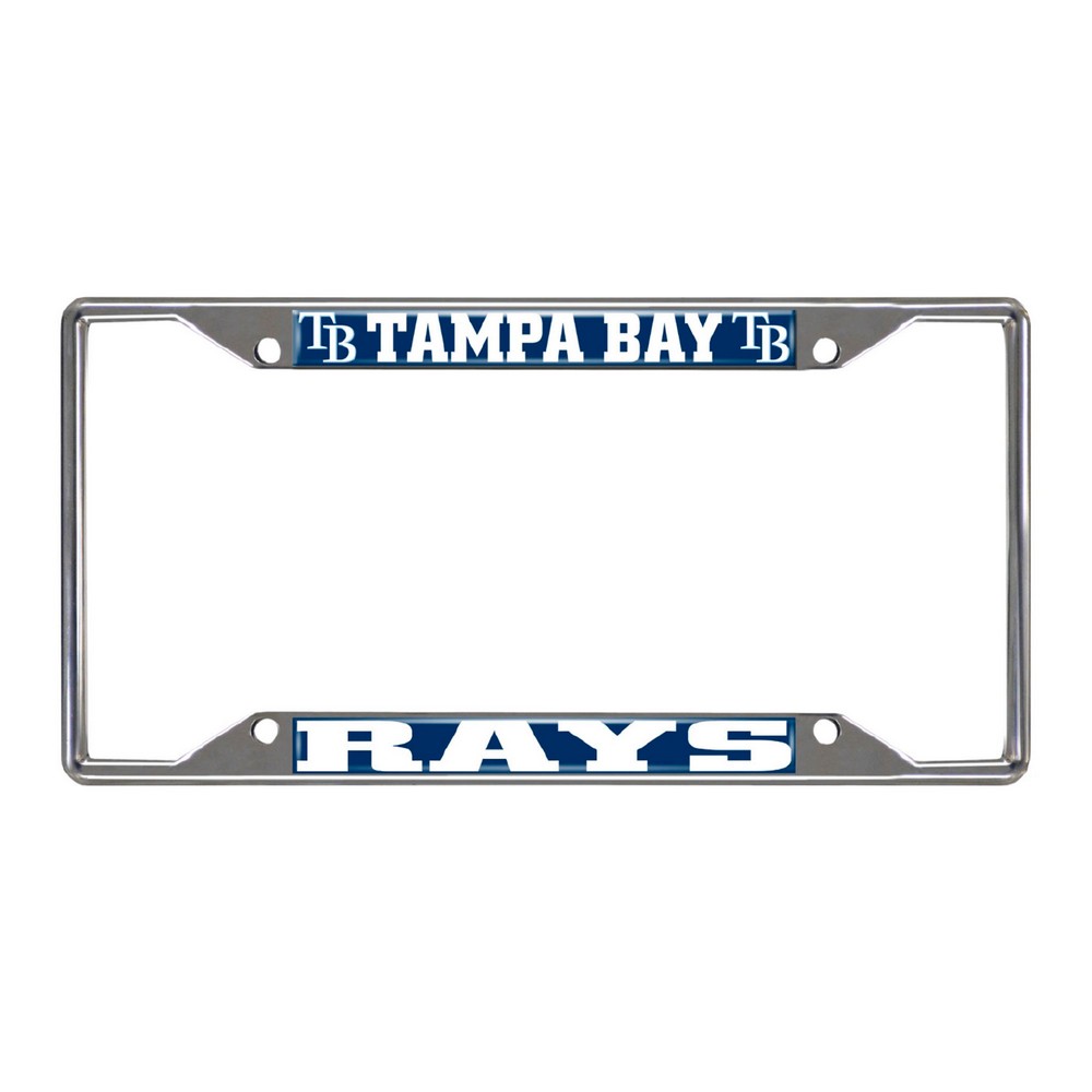 | Tampa Bay Rays Chrome Metal License Plate Frame, 6.25in x 12.25in Made of chrome metal with a durable finish that resists the elements Team logo is domed and features vibrant colors that catch the eye 4 pre-drilled holes ensure a safe and secure fit, plus no rattling noises while driving Slimline design helps keep registration tag visible Fits most standard plates, measures 6.25" x 12.25" Screws not included MLB - Tampa Bay Rays in Florida MLB Major League Baseball |