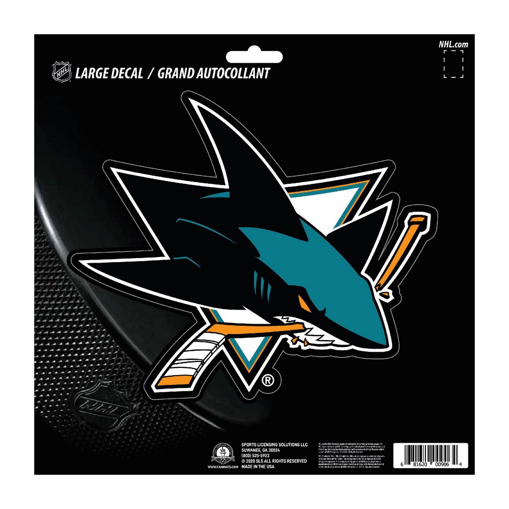 | San Jose Sharks Large Decal Sticker 1 Large decal, approximately 8'x8' Full, true team color UV resistant for outstanding durability Die-cut, premium vinyl material Perfect for any hard surface Officially Licensed NHL - San Jose Sharks in California NHL National Hockey League |