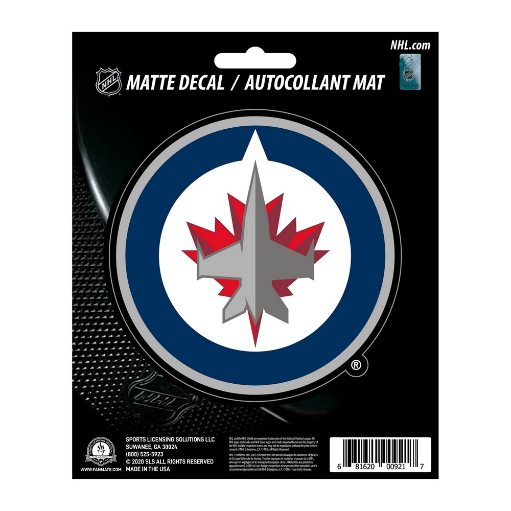 | Winnipeg Jets Matte Decal Sticker Includes 1 large decal Adhesive decals are die-cut to shape Printed on premium vinyl material UV resistant lamination for outstanding durability Great for cars, laptops, coolers and other hard surfaces Approximately 5in x 6.25in NHL - Winnipeg Jets in Manitoba NHL National Hockey League |