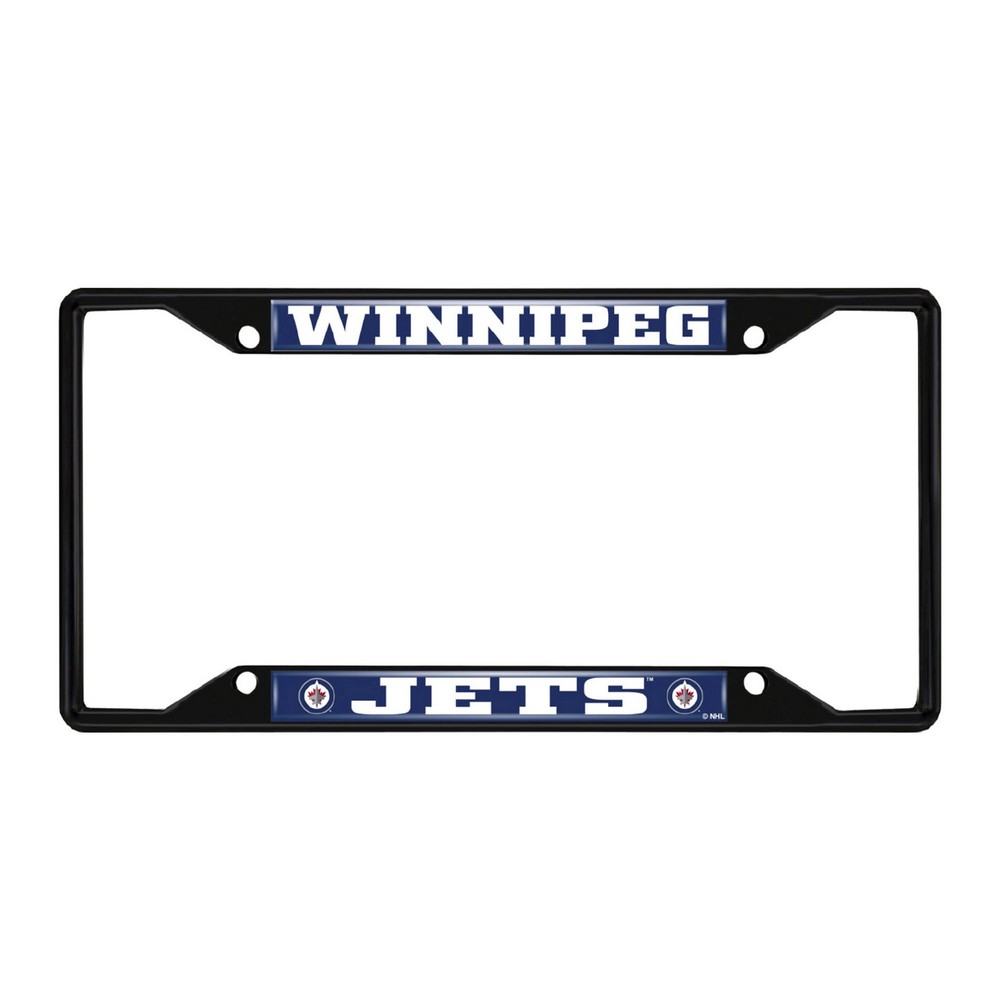 | Winnipeg Jets Metal License Plate Frame Black Finish Made of metal with a black finish for added style and protection Team logo is domed and features vibrant colors that catch the eye 4 pre-drilled holes ensure a safe and secure fit, plus no rattling noises while driving Slimline design helps keep registration tag visible Fits most standard plates, measures 6.25" x 12.25" Screws not included NHL - Winnipeg Jets in Manitoba NHL National Hockey League |
