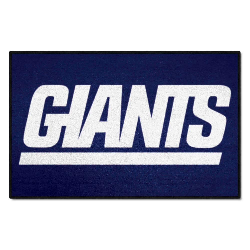 | New York Giants Starter Mat Accent Rug - 19in. x 30in., NFL Vintage 9 Ounce, 100 % Nylon Face Recycled vinyl backing for a durable and longer-lasting product Machine made and tufted in the USA Non-skid backing with serged borders for added durability Machine washable; vacuum regularly and spot clean for any easy and quick clean Officially licensed and chromojet-printed in true team colors for vibrant, lasting color NFLV - New York Giants in New Jersey NFL National Football League |