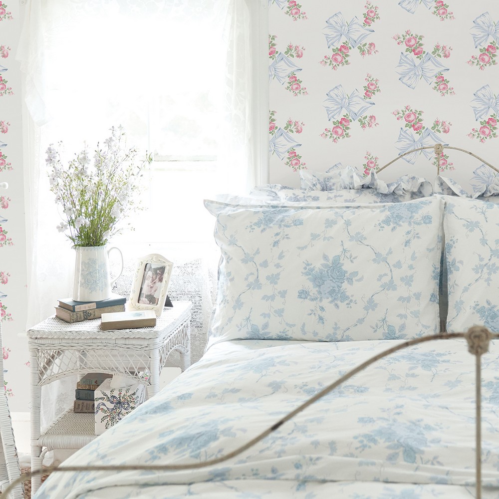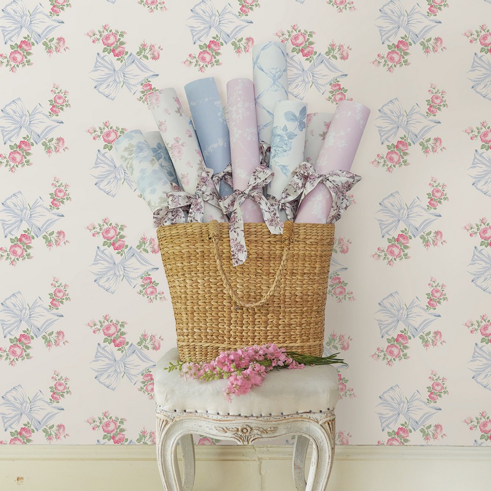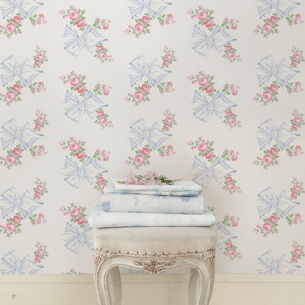 Brewster Wallcovering Rosa Beaux Pastel Blue Large Bow Spot Wallpaper AST4113