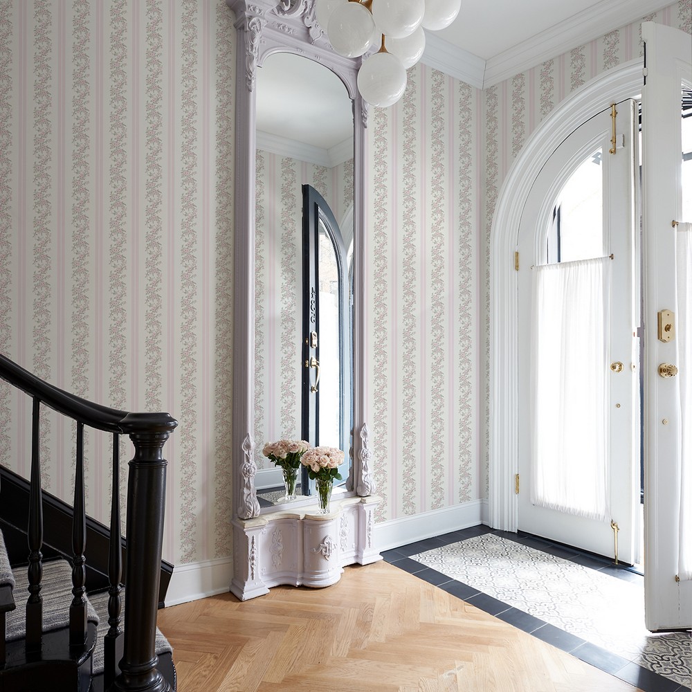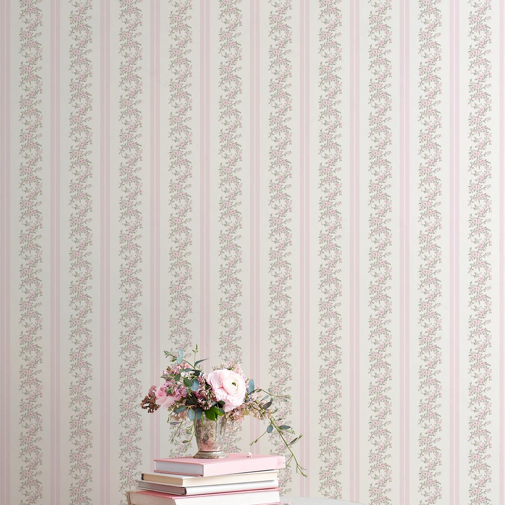 Brewster Wallcovering Marigold Wreath Pastel Peach Floral Stripe Wallpaper AST4649