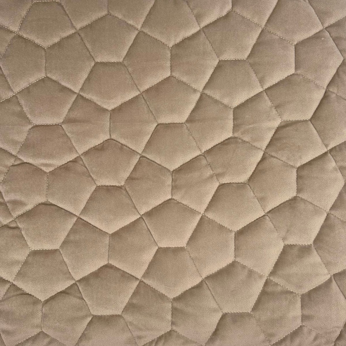 | Luxurious quilted velvet with a captivating pentagon pattern. This upholstery fabric is wide width for upholstery, table lines and soft furnishings. Pentagon patterns range in size about 2.5 x 3 inches for a noticable design. |