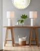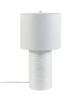 | 510 Design See below 1 Table Lamp: 12" Dia x 21.5"H Body Size: 7" Dia x 11"H Shade Size: 12" Dia x 10"H Socket Size: 1.5" Dia x 2.5"H Cord Length: 60" 70% resin, 25% fabric, 5% iron Base: 100% resin Shade Fabric: 65% ployester, 35% cotton Casual Style Includes 1 Piece(s) Spot clean only; Handle with care The 510 Design Crewe Textured Resin Table Lamp offers a clean and minimalistic update to your decor. Crafted from resin, this cylindrical lamp features a matte white finish with textured details for a chic modern look. The coordinating round drum shade softly filters the light to create a warm glow, while the 3-way rotary switch allows you to dim the light for the perfect ambience. Flaunting its unique design, this round table lamp provides an elevated accent piece as well as a practical light source that brings both fashion and function to any room in your home. Includes a 60" clear power cord and requires 1 Type A light bulb (included). Spot clean only. |